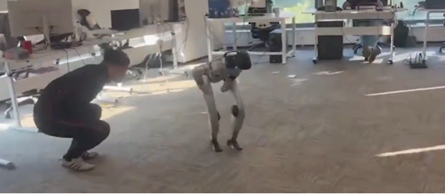 然而在随后的模仿过程中,由于动作出现偏差,机器人不慎一脚踢中工程师,意外场面令人忍俊不禁。